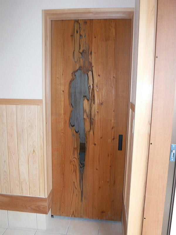 ムササビがあけた穴を生かして造ったら、こんなドアに生まれ変わりました。