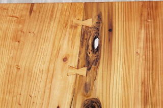 2枚の、板を貼り合わせて割れ止めしています。(下の写真)