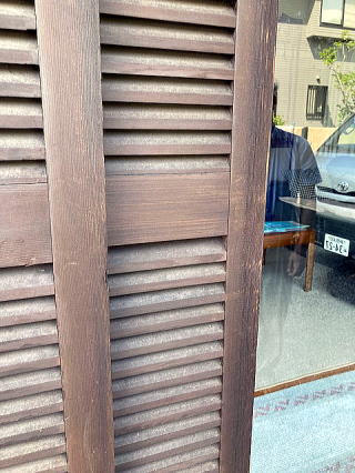 材料の木材はピーラ 今年で43年目を迎える自宅のガラリ戸です。途中2回屋外用塗料を塗りなおして使っています。ルーバーになっているので通風と換気で冬は保温効果もあります。 このルーバーは扉の一部に組み込むことも可能です。 60年目を目指して今日も現役で活躍しています。