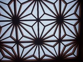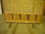 材料は、杉と葦(よし)で、丈夫で手触りの良い、う造り仕上げです。下の腰は、無双窓(むそうまど)で